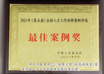 市人才服務(wù)中心《“數聚才智”的濟南探索》榮獲全國人才工作創(chuàng )新案例最佳案例獎。
